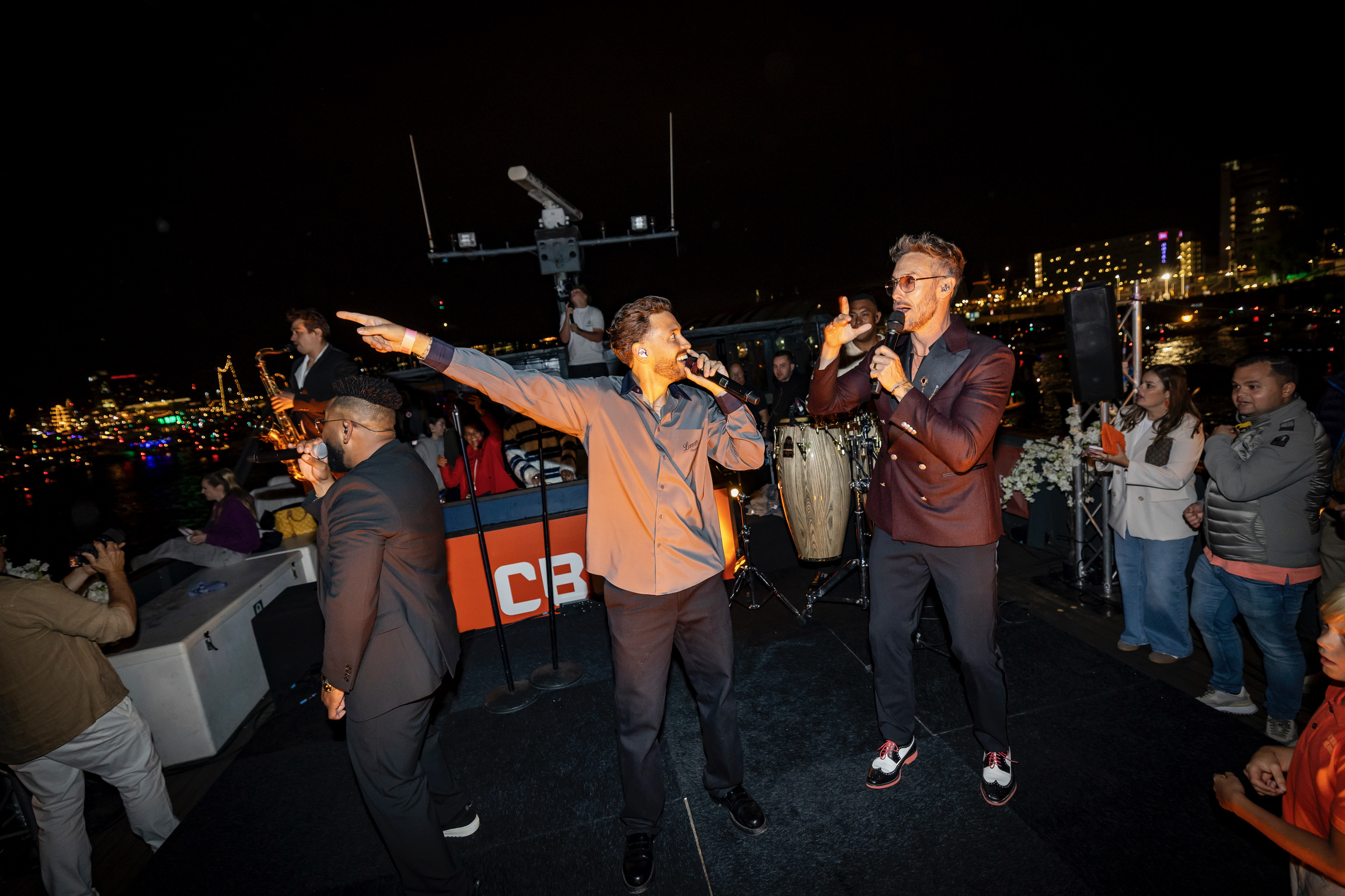 Een walking dinner op het water, verfijnde gerechten, een glas champagne in de hand en overal lachende gezichten. Het geluid van klotsend water mengde zich met muziek en gesprekken over successen, herinneringen en toekomstplannen.