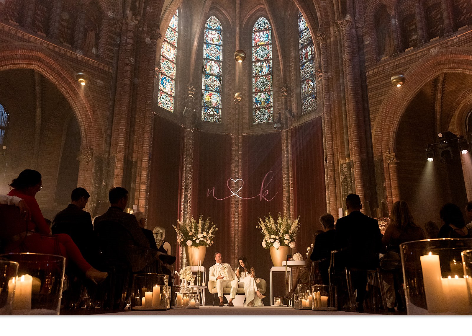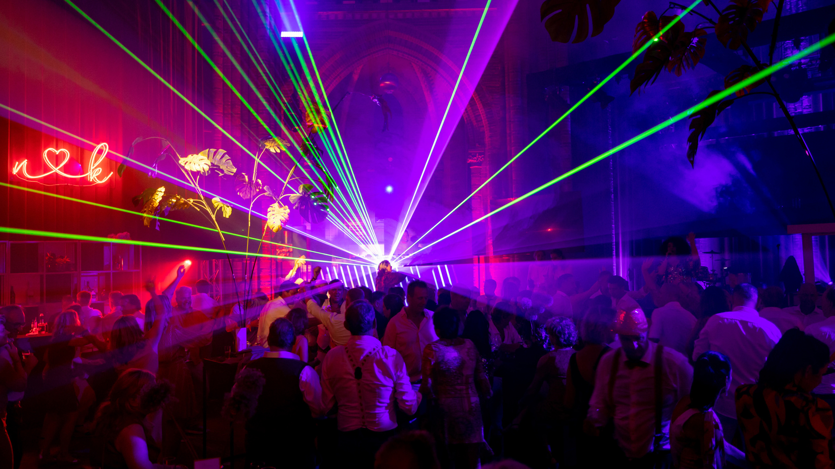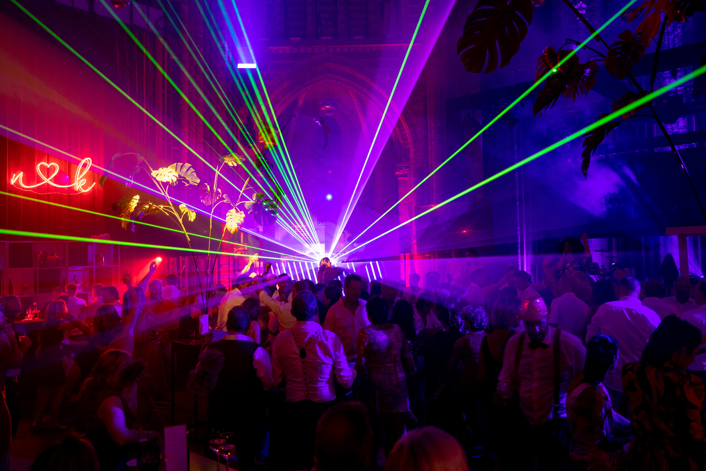 Onder het zachte licht van kaarsen worden heerlijke gerechten geserveerd en zijn er speeches met warme woorden richting het bruidspaar, tussen de gangen door wordt er flink gedanst.